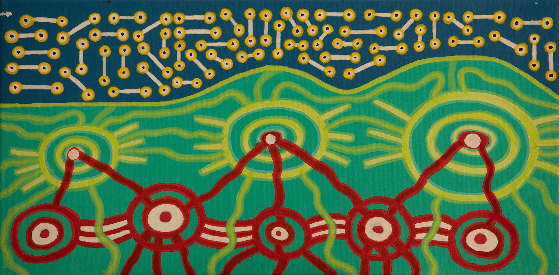 The exhibition features work by 11 Aboriginal Artists from Boomalli Aboriginal Artists Co-operative. The works in this exhibition are each artists’ response to a call to protect Country from the devastating effects of Myrtle Rust.