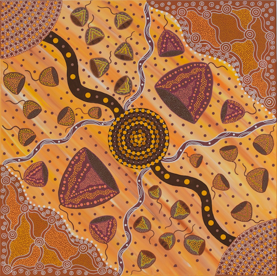 Sharon Smith is a descendant of the Wiradjuri tribe of western New South Wales. An emerging artist, Sharon’s paintings reflect her love of the natural world. Through her depictions of landscapes, trees and animals, Sharon explores her own personal connection with, and her people’s age-old relationship to, the earth.
